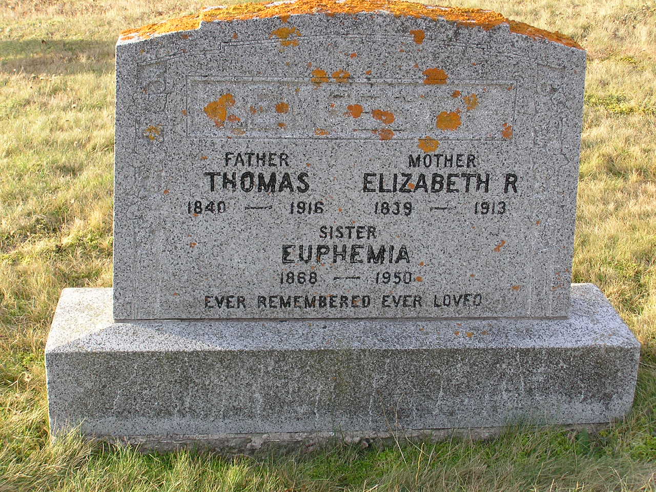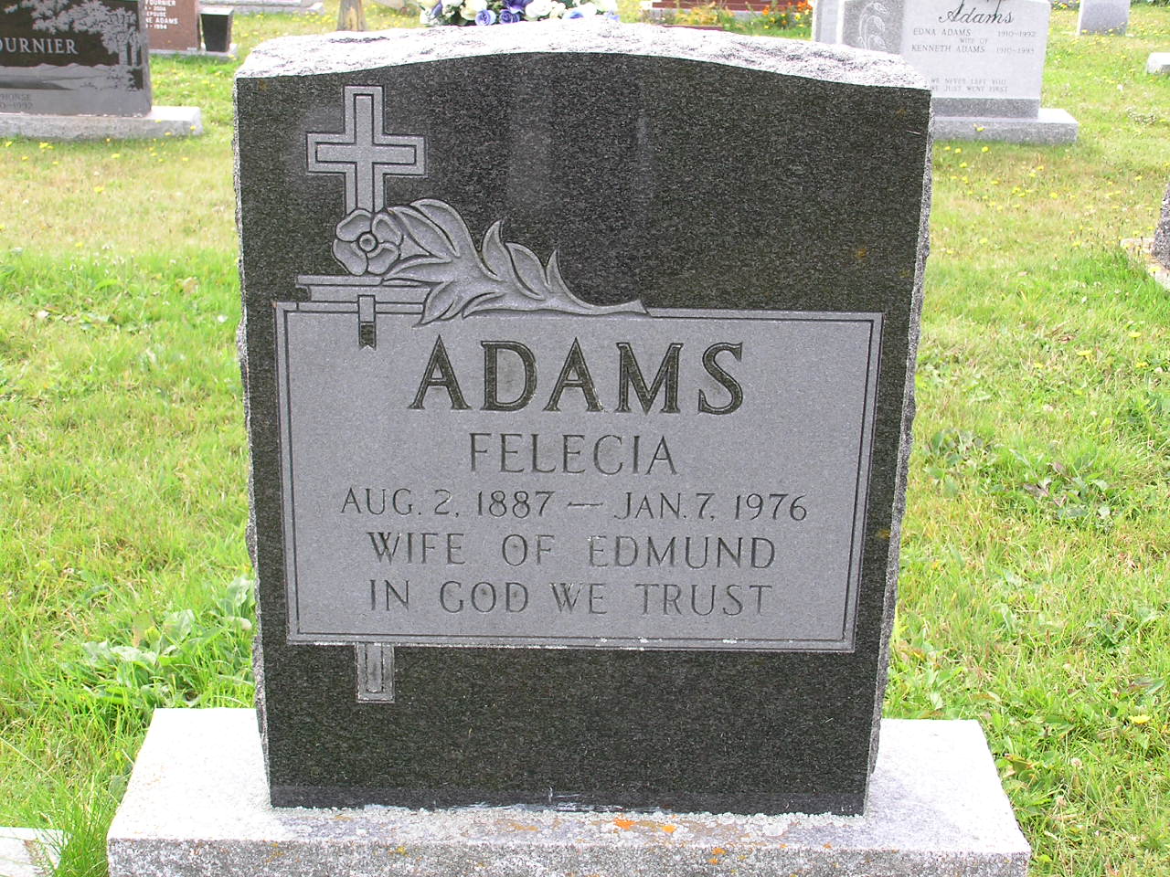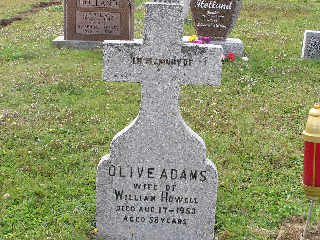 Adams Olive (Howell) in St. Patrick's Roman Catholic Cemetery, Douglastown