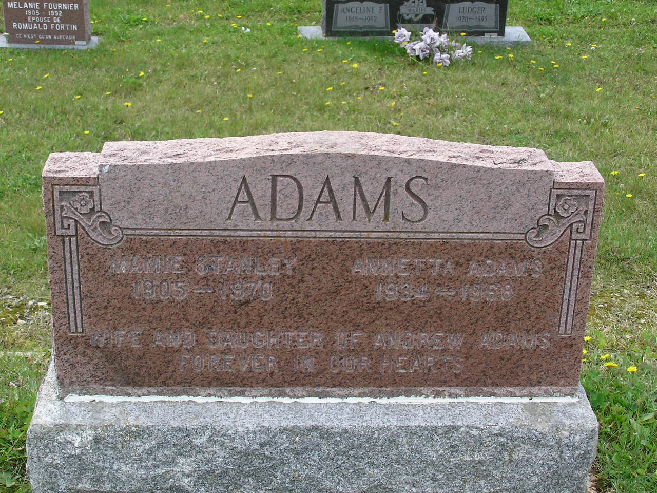 Adams Mamie Stanley, Annetta in Cimetiere des Anges (RC), St Marjorique