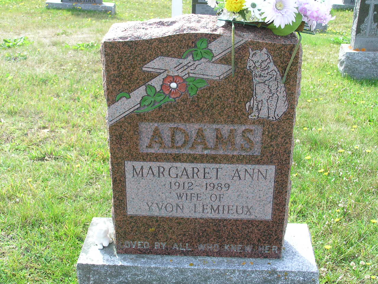 Adams Margaret Ann (Lemieux) in Cimetiere des Anges (RC), St Marjorique