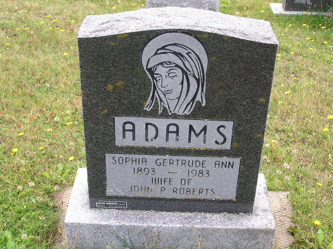 Adams Sophia (Roberts) in Cimetiere des Anges (RC), St Marjorique