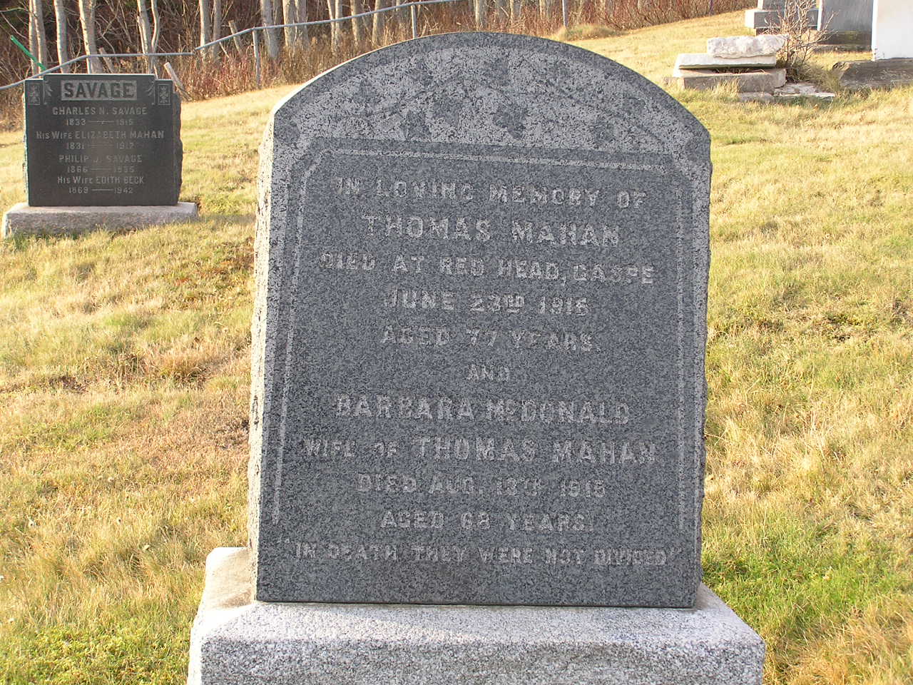 Young James, Mary Barter in St. Andrew's United Cemetery, New Richmond