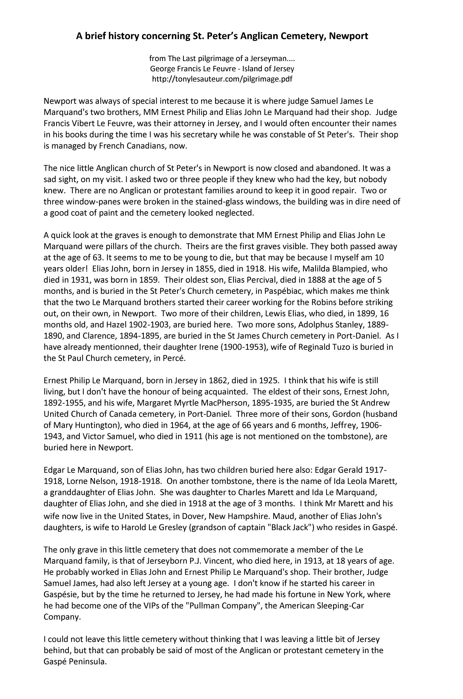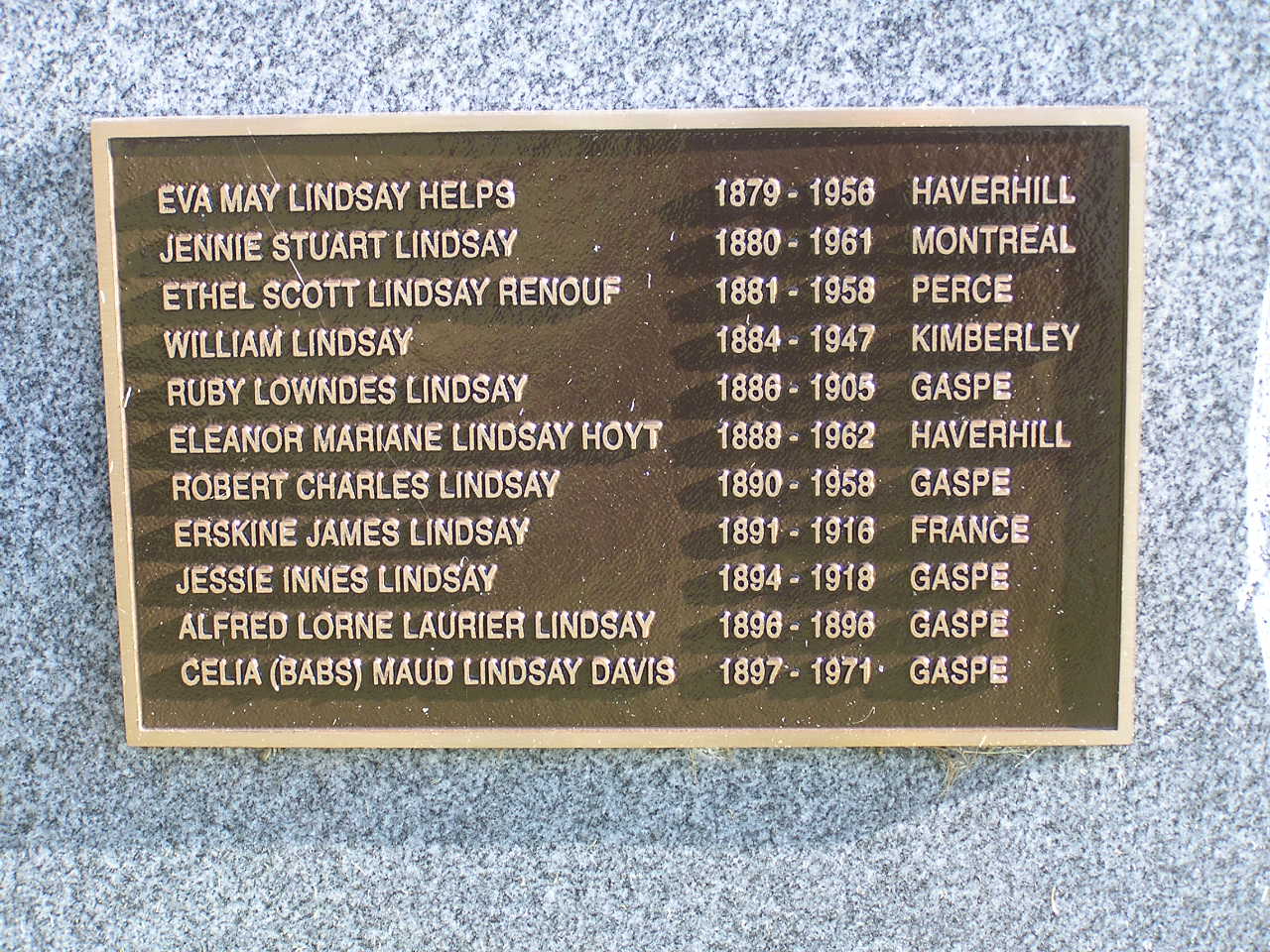 Adams Leonard in St. Paul's Anglican Cemetery, Gaspe