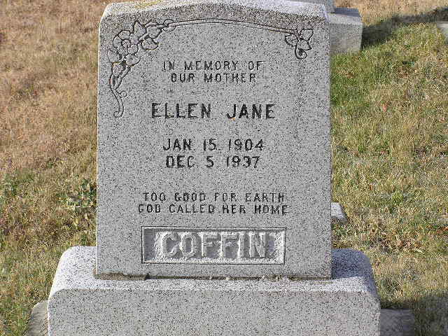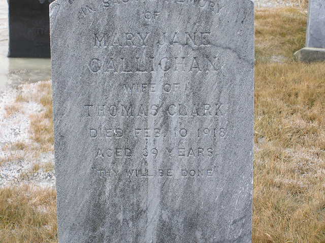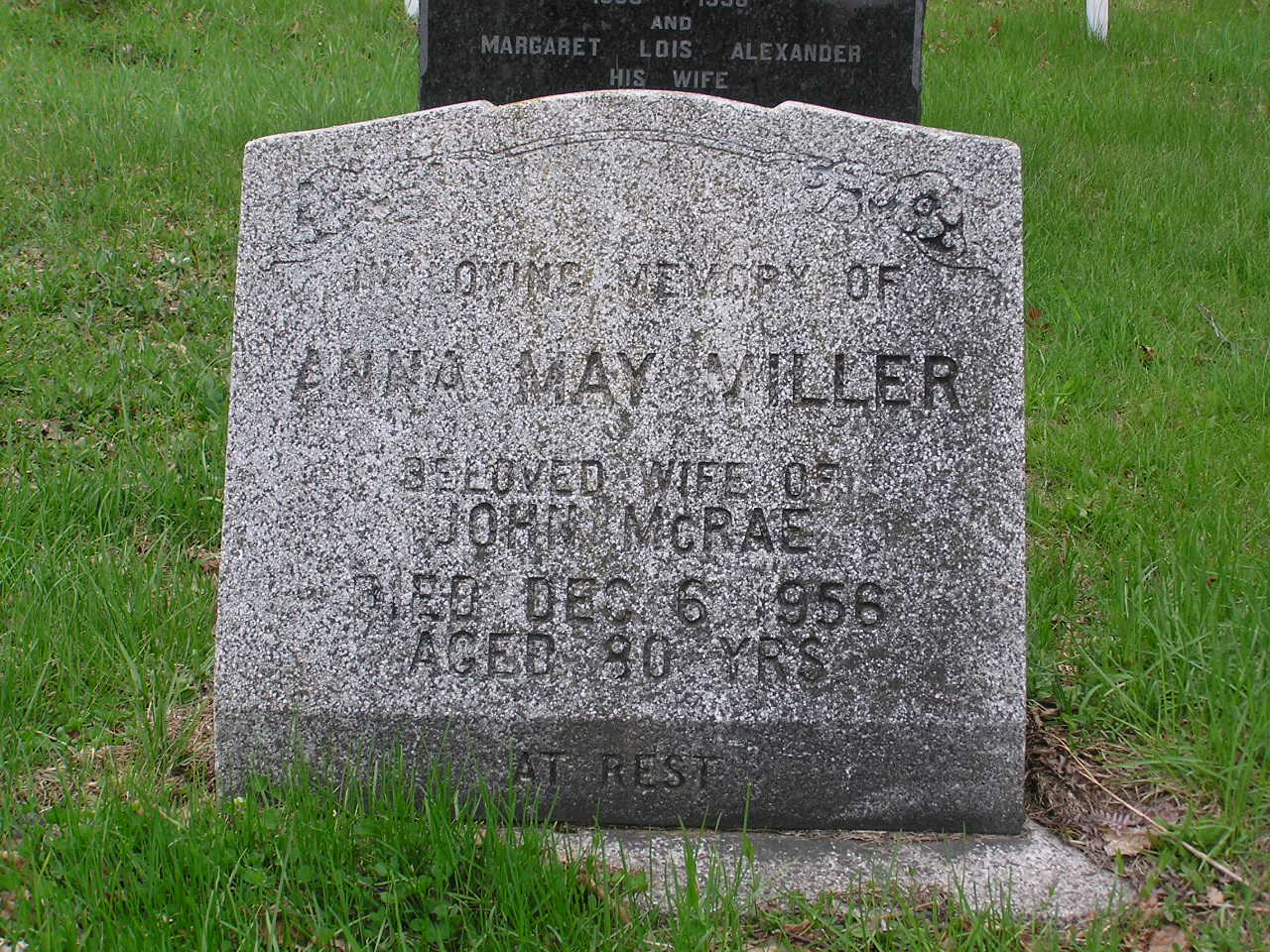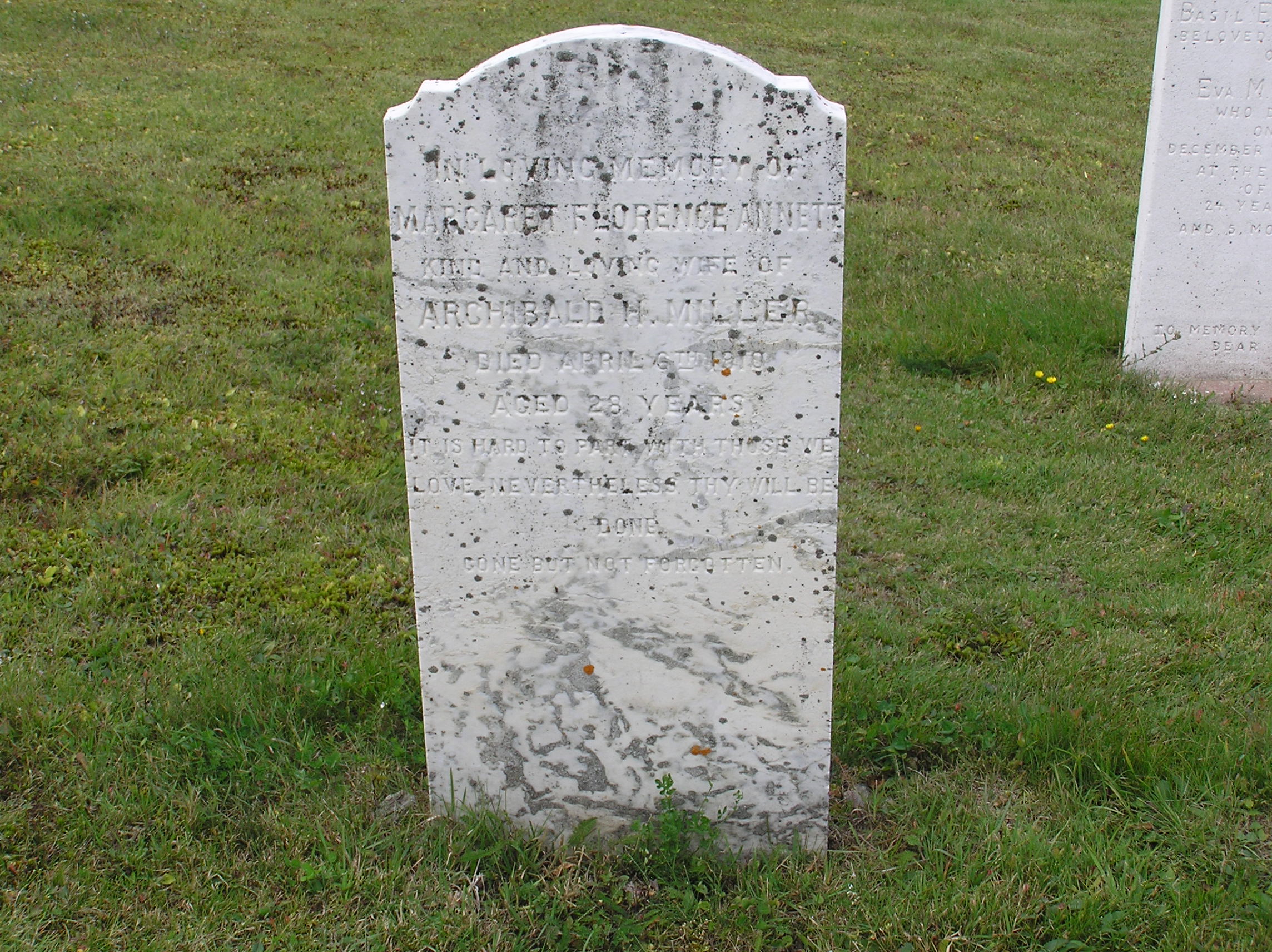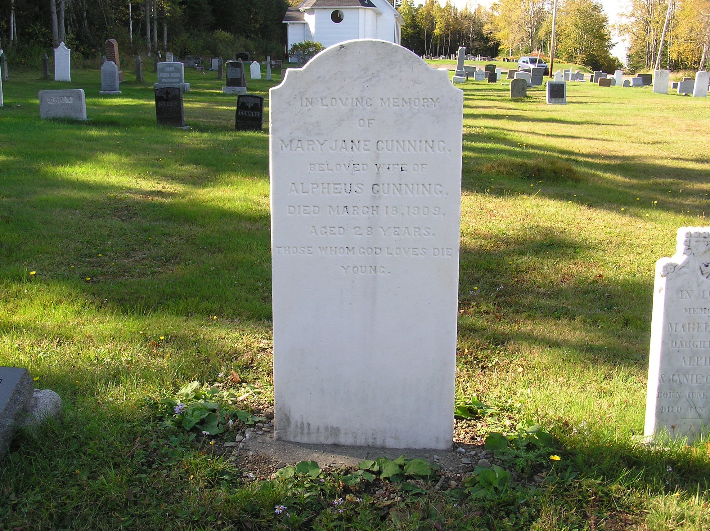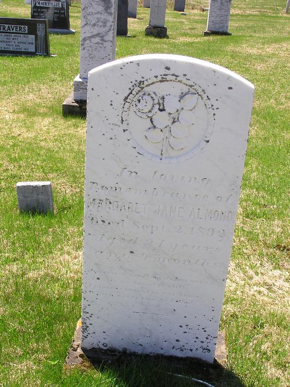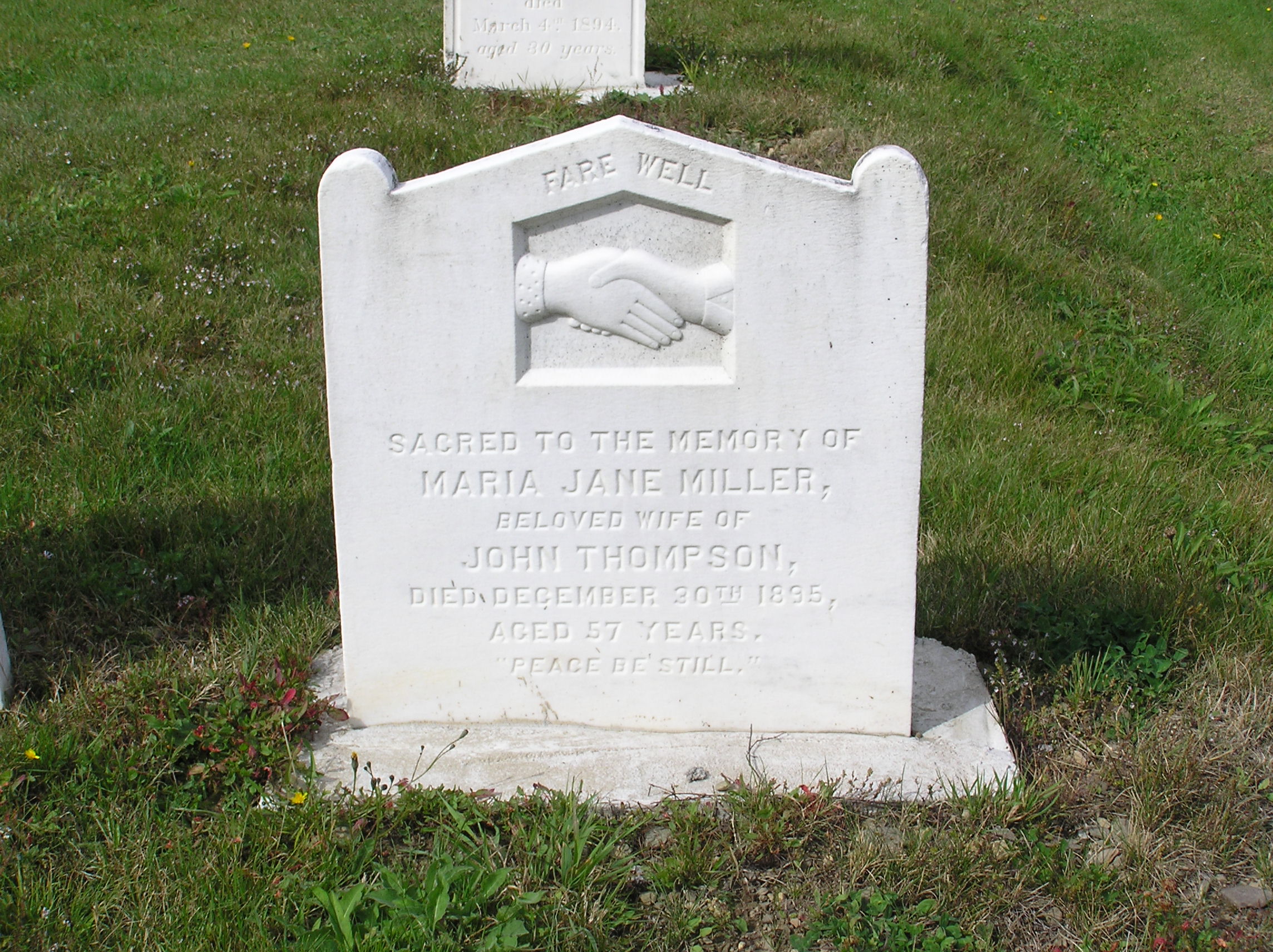 Young Mary Jane (Miller) in St. Andrew's United Cemetery, Port Daniel