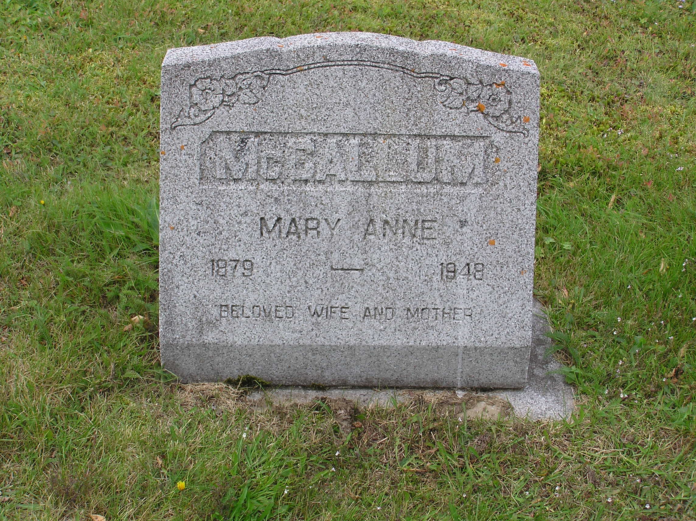 Young Mary Ann in St. Andrew's United Cemetery, Port Daniel