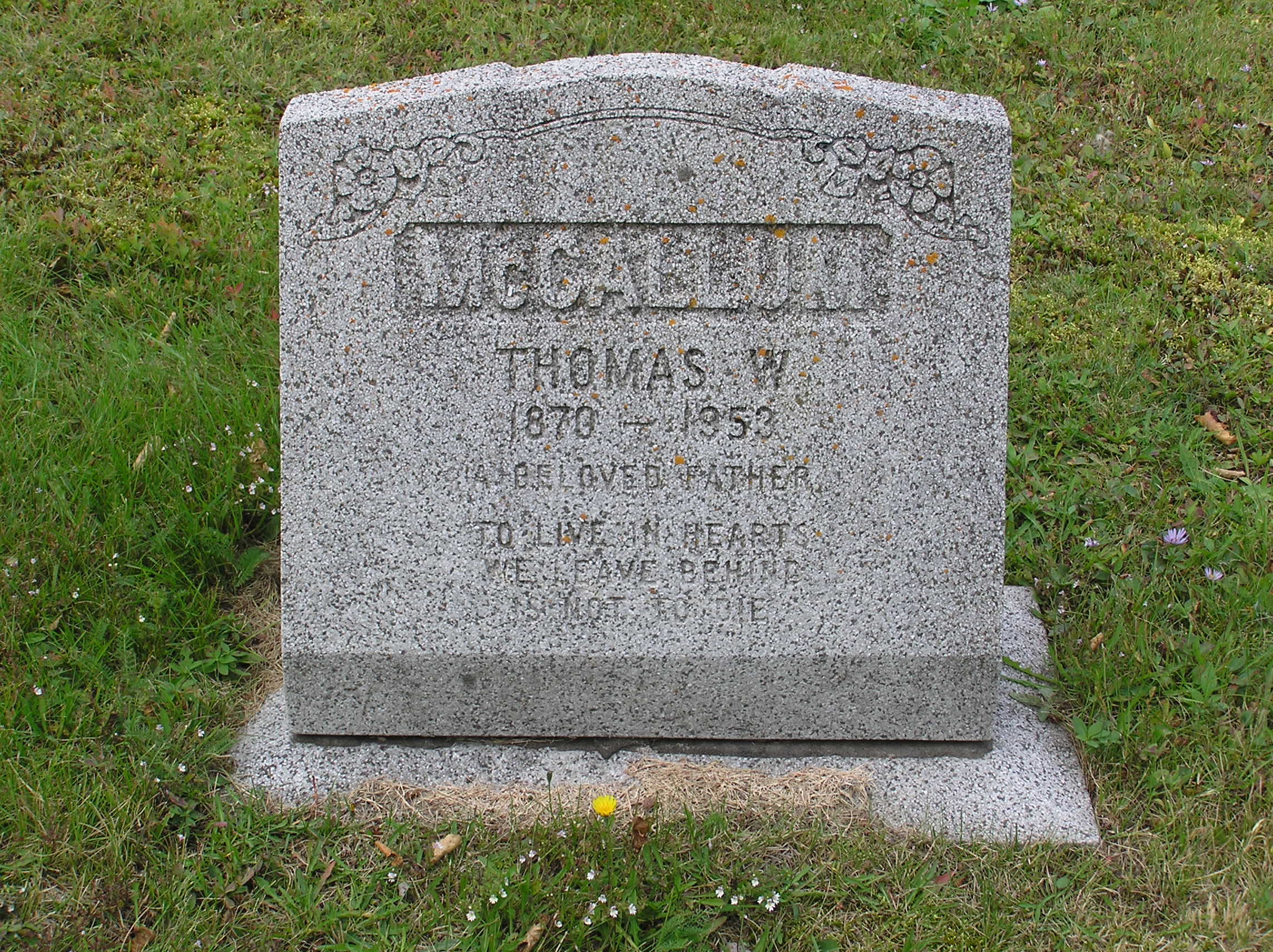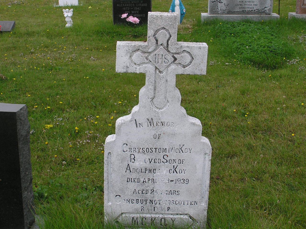 Adams Allan in St. Patrick's Roman Catholic Cemetery, Douglastown
