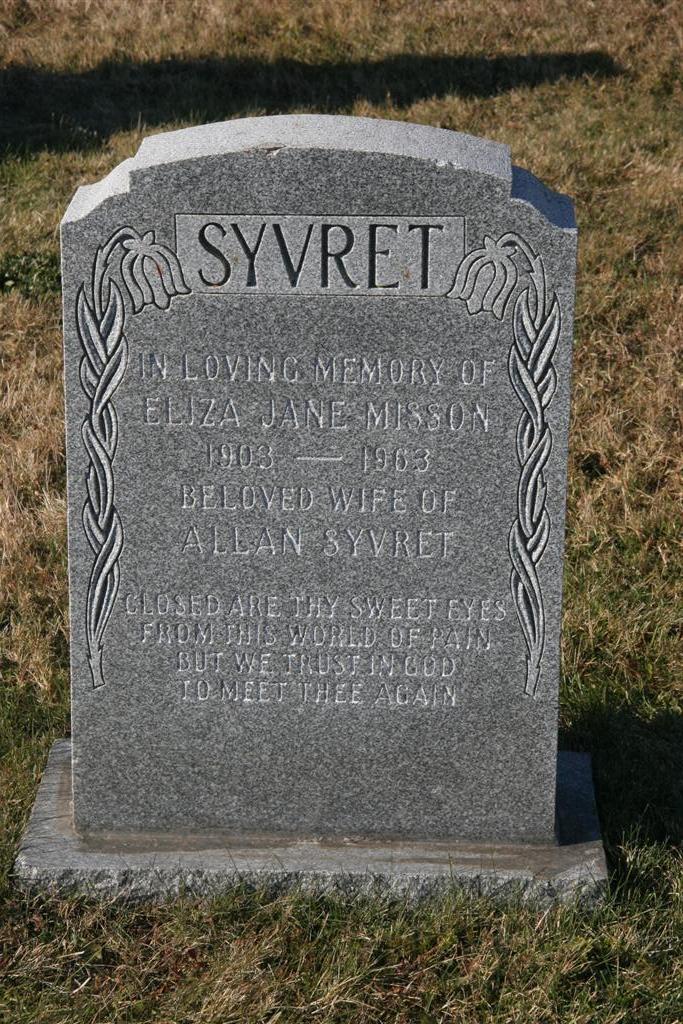 Woodman Velma Syvret in St. Peter's Anglican Cemetery, Malbaie-new