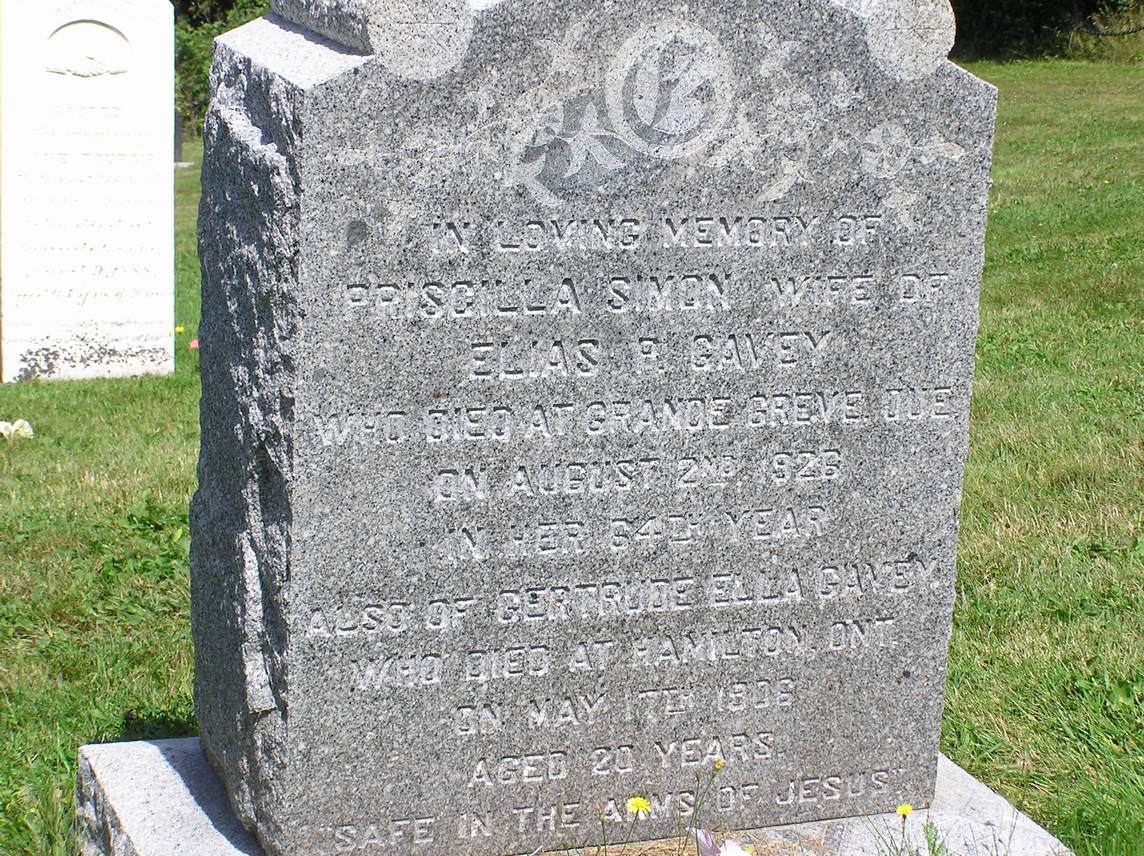 Young Isabella in St. Peter's Anglican Cemetery, Little Gaspe