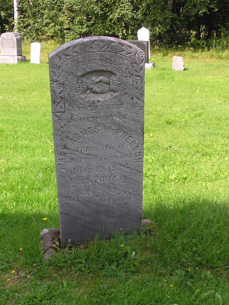 Young Jane (McPherson) in St. Andrew's United Cemetery, Port Daniel